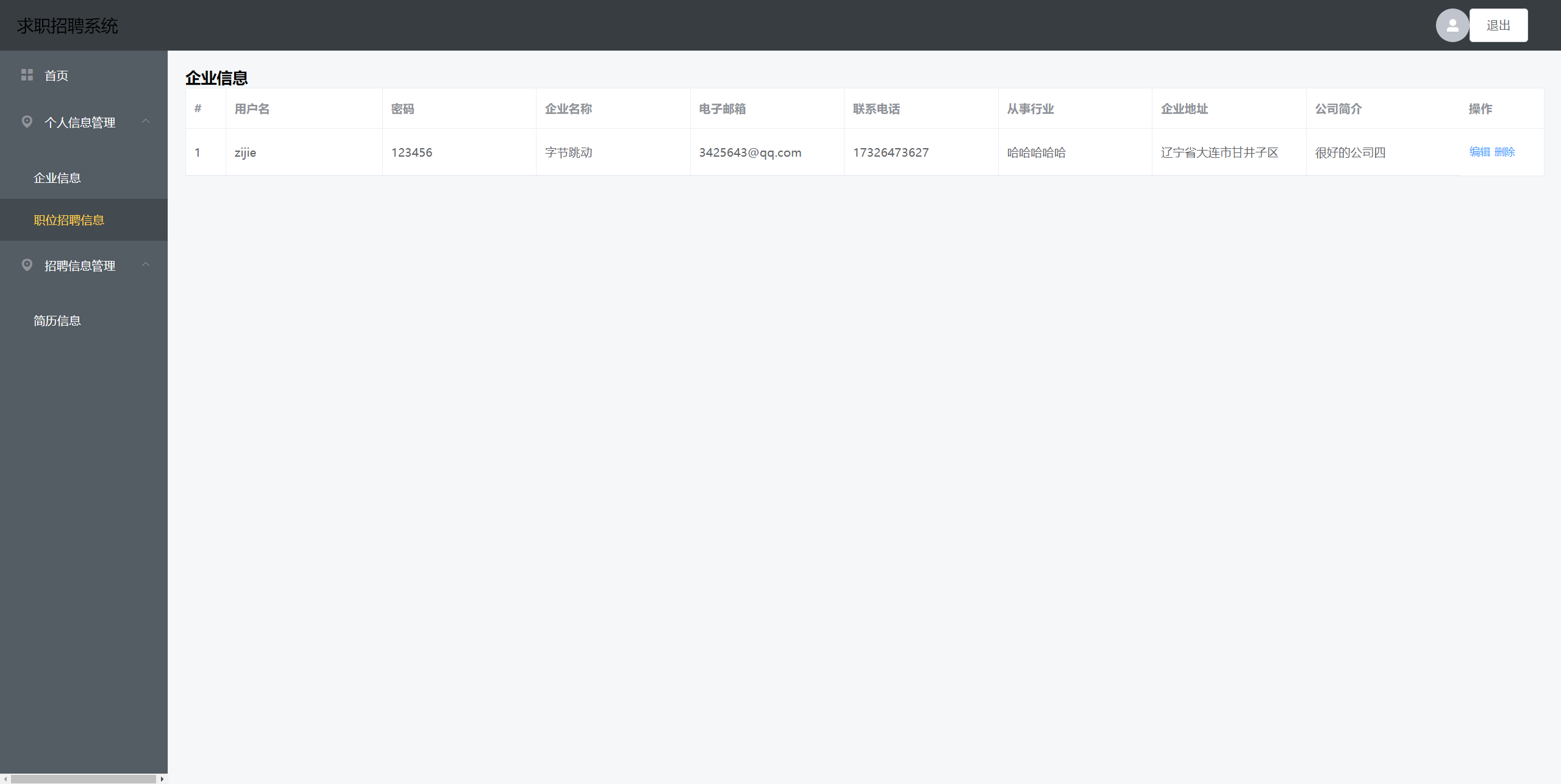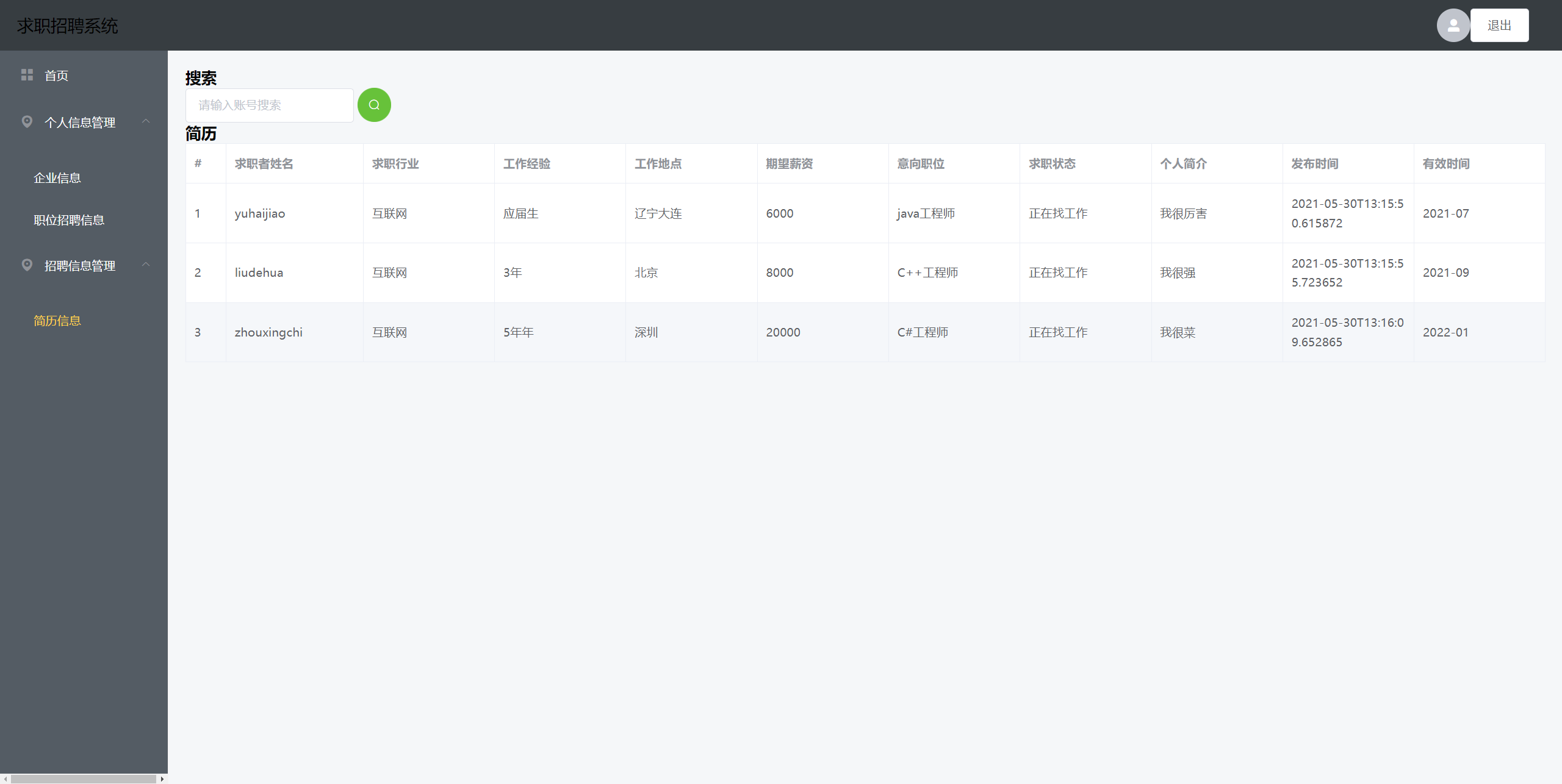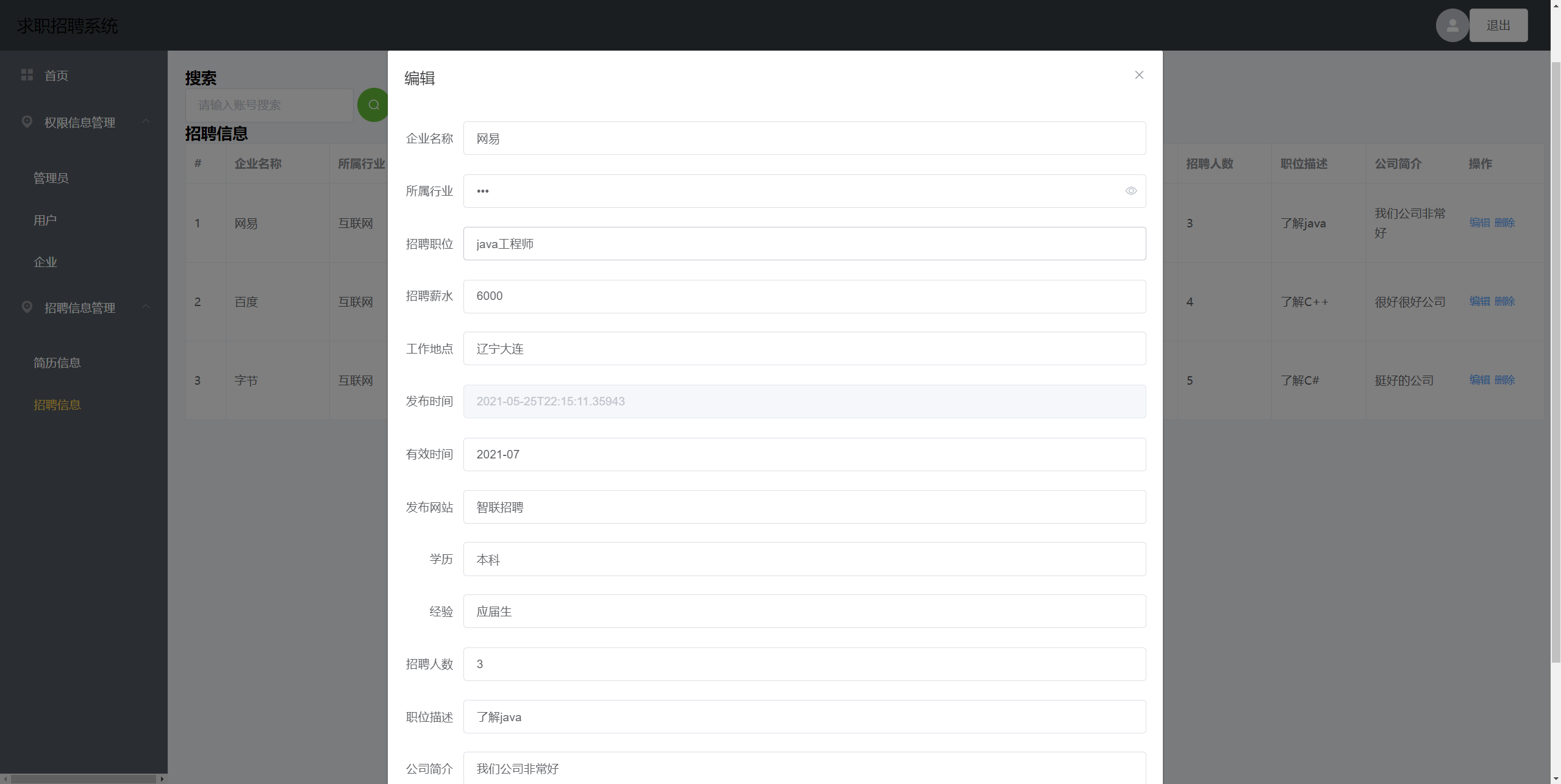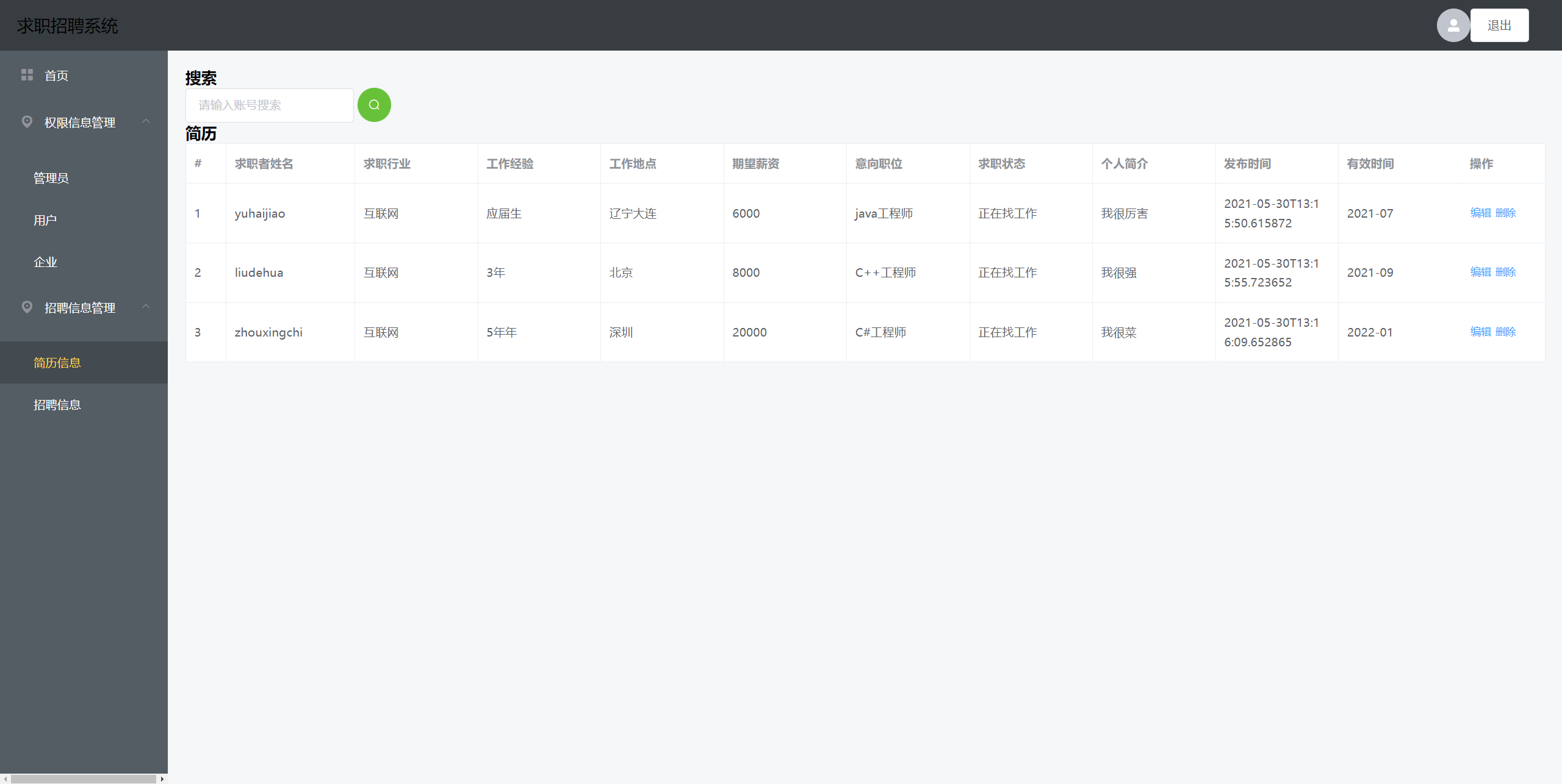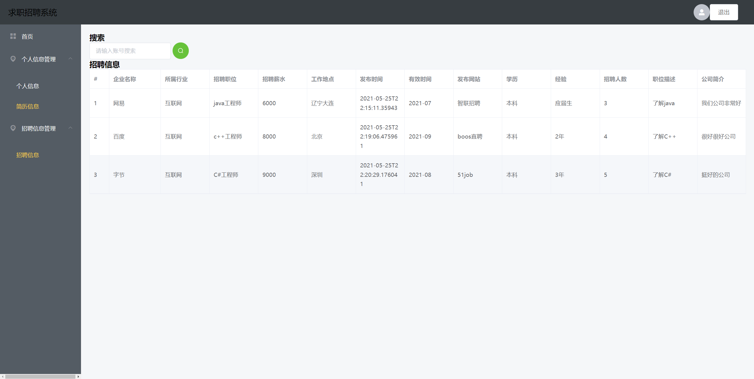 基于SpringBoot和Vue的前后端分离的求职招聘系统